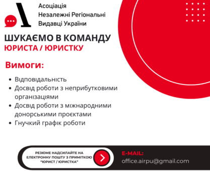 АНРВУ оголошує конкурс на вакансію юриста / юристки. Вимоги до кандидатів...