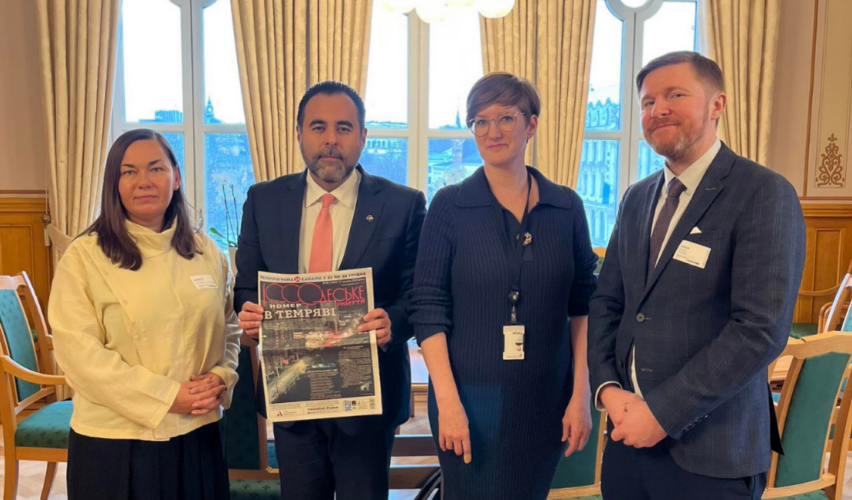 It was also an opportunity to show to Masud Gharahkhani the media that is published practically in the dark — Odesa Life. Its thousandth issue was printed during a blackout. Vorskla, MIG, Hryvnia, Kremenchutskyi Telegraf, and Trudova Slava are now in the Norwegian Parliament as proof that local journalism in Ukraine is alive. Speaking about regional media, Oksana Brovko emphasized how they work every day — under shelling, in the cold, under pressure, in a reality where journalists are not only silenced but also deliberately physically destroyed. Support from partners is what keeps them going and prevents them from falling, strengthens their resilience, and enables them to speak the truth.