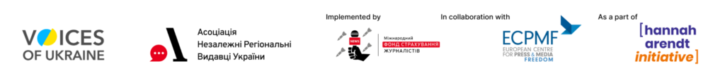 The safety training for media professionals was organized by the Association of Independent Regional Press Publishers of Ukraine (AIRPPU) as part of the International Insurance Fund for Journalists project. The project is part of the Voices of Ukraine program, which falls under the SAFE initiative coordinated by the European Centre for Press and Media Freedom. The Voices of Ukraine project is implemented within the framework of the Hannah Arendt Initiative.