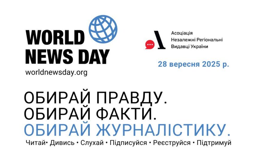 З 23 по 28 вересня Асоціація «Незалежні регіональні видавці України» (АНРВУ) бере участь у міжнародній кампанії World News Day, організованій WAN-IFRA у партнерстві з редакціями з більш як 100 країн світу.