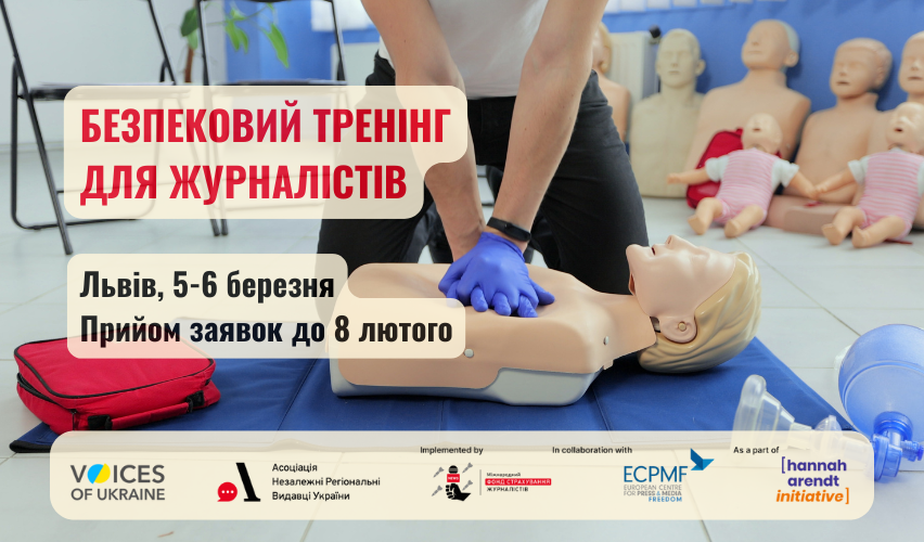 Безпековий тренінг для медійників проводить Асоціація «Незалежні регіональні видавці України» (АНРВУ) в рамках проєкту Міжнародний фонд страхування журналістів. Проєкт є частиною програми Voices of Ukraine, що входить до програми SAFE, яку координує European Centre for Press and Media Freedom. Проєкт Voices of Ukraine реалізується в межах Hannah Arendt Initiative.