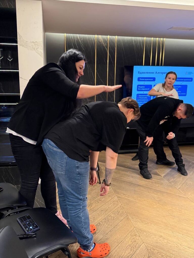 – Коли люди пробують усе руками, стає набагато простіше. Найскладніше в першій допомозі, якщо ніколи цього не робив, – підійти і зробити перший раз на живій людині. Люди хвилюються, губляться. Ми стараємося, щоб вони відточили навички до автоматизму і працювали не головою, а руками. Саме тому дуже важливо регулярно проходити такі безпекові тренінги, мінімум раз чи двічі на рік, а то й частіше. Сертифікат, який ми видаємо після проходження навчання, діє два роки, — говорить Олександр.