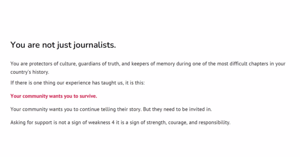 «Ви не просто журналісти, ви захисники культури, хранителі правди, ті, хто зберігають пам’ять. Ваша спільнота хоче, щоб ви вижили», — сказала Софі Голен, підкреслюючи, що саме спільнота є джерелом сили для медіа.
