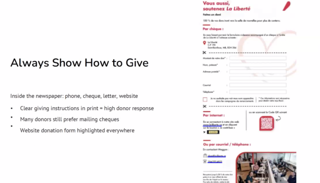 La Liberté довела: малих донатів не буває. $10/міс від багатьох людей дають значну суму. Найефективніші канали — бюлетень і газета, які створюють відчуття близькості та довіри. Соцмережі ж виявилися слабким інструментом для конверсії: вони давали видимість, але не приносили грошей.