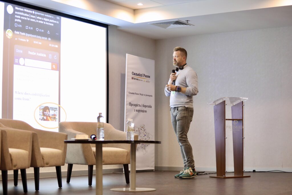 Наступний спікер — Tomas Bella, співзасновник, головний директор з цифрових технологій, Dennikn.sk зі Словаччини, — поділився крутим досвідом, як у медіа Denník N створили успішну модель доходів від читачів і фінансову незалежність. А Veslemøy Hedvig Østrem, шефредакторка в Altinget.no (Норвегія) — про розсилки як стабільне джерело доходу. Натомість Olli Seuri, головний редакторк у Uusijuttu.fi (Фінляндія), — про створення стартапу та формування спільноти з авдиторією. Henrik Brattli Vold, науковий співробітник кафедри журналістики Stiftelsen Institutt For Journalistikk, — про використання штучного інтелекту в журналістських розслідуваннях і фактчекінгу.