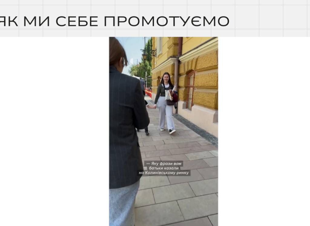 Є й легші формати. Наприклад, опитування на ринку, де люди згадують фрази своїх батьків, як-от «Не відходь далеко, бо загубишся». Для багатьох це впізнаваний досвід. Люди дивляться, діляться, а в кінці — отримують анонс довшого формату.