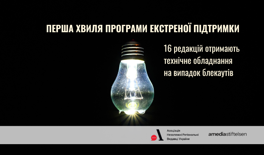 Через посилений тиск на українську енергосистему — постійні блекаути, вихід з ладу генераторів і технічного обладнання — багатьом місцевим редакціям доводиться працювати на межі можливостей. Щоб допомогти їм залишатися в ефірі та продовжувати інформувати свої громади, Асоціація «Незалежні регіональні видавці України» (АНРВУ) за підтримки Amedia Foundation реалізували першу хвилю екстреної підтримки.