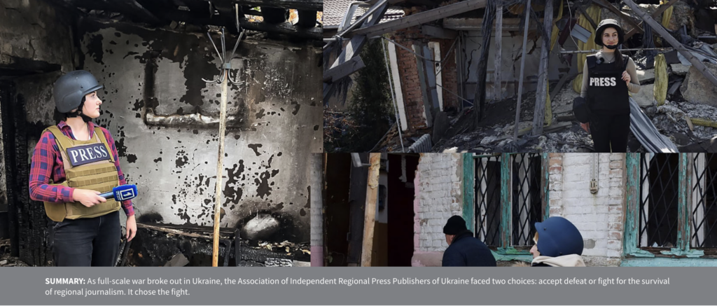 Я багато років працювала над тим, щоб регіональні незалежні редакції розвивалися й ставали сильнішими — як виконавча директорка Асоціації незалежних регіональних видавців України (АНРВУ). Але в одну мить наші розмови перейшли від тем про сталість і зростання — до тем виживання. Не «як запустити paywall», а «як приховати особисті дані журналістів в окупованому Херсоні». Посеред ночі телефонували редактори: «Ми не можемо друкувати газету — друкарню знищено». Або: «Ми в окупації, допоможіть евакуюватися!»