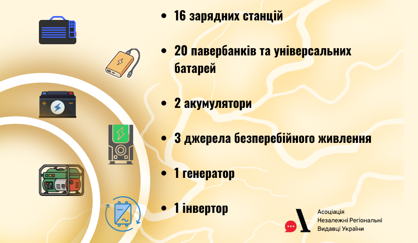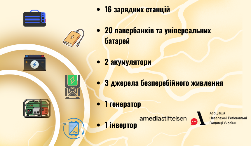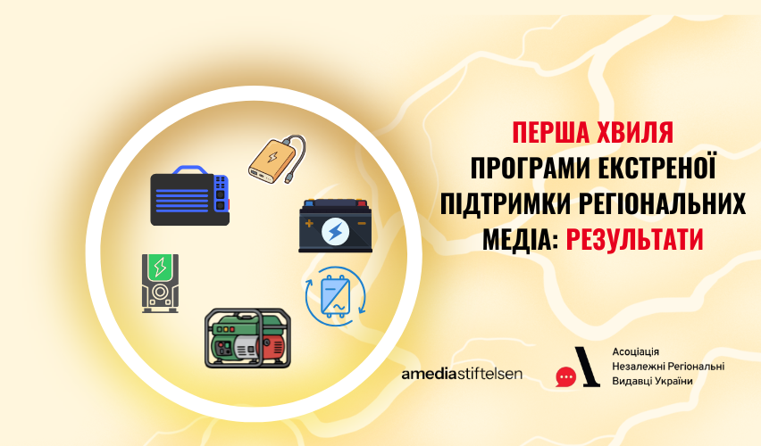 Програма екстреної підтримки регіональних медіа стартувала восени 2025 року і вже реалізувала першу хвилю допомоги. В її межах 16 редакцій із різних областей України отримали обладнання, яке дозволяє працювати навіть під час тривалих відключень світла.