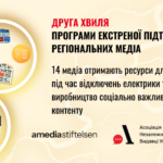 Друга хвиля програми спрямована так само на енергетичну підтримку, а також на підтримку виробництва соціально важливого контенту. Цього тижня частина відібраних медіа вже отримає від нашої команди повідомлення про позитивне рішення.