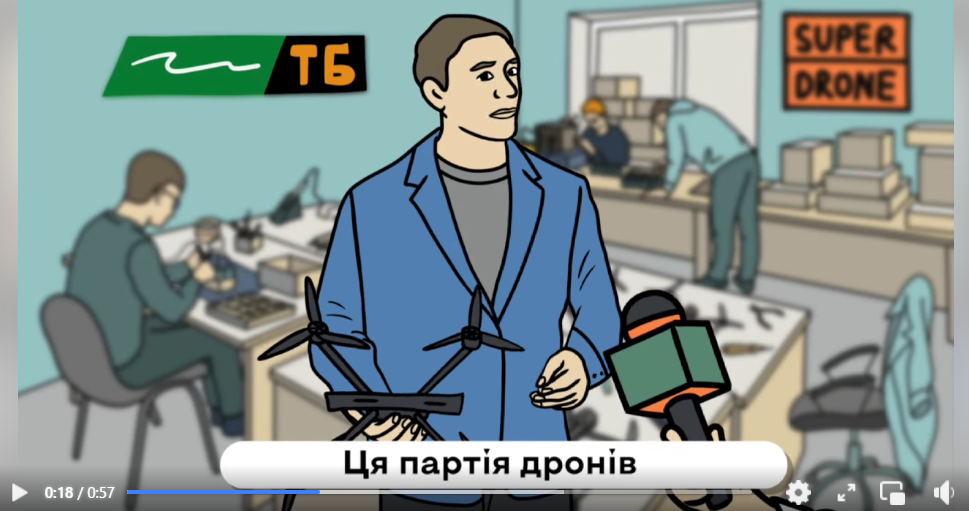 В кадрі з’являється один зі збирачів дронів у показаному на початку приміщенні й каже: «Ми подвоїли потужності. Ця партія дронів скоро їде на фронт».