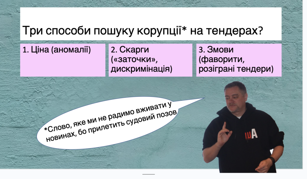 Спікер наголошує: бізнес у нормальній економіці прийшов у цей світ заробляти, і в цьому немає нічого злочинного. Проблема починається там, де замовник — орган влади чи комунальне підприємство — закладає у тендер завідомо невигідні умови, під які може зайти лише «свій» підрядник. Саме замовник є ключовою точкою уваги журналіста, адже він відповідає за очікувану вартість, умови оплати та обрання переможця. Корупційна логіка працює не тому, що бізнес «поганий», а тому, що правила на користь обраних створює саме розпорядник бюджетних коштів. Тому й потрібна журналістська пильність.