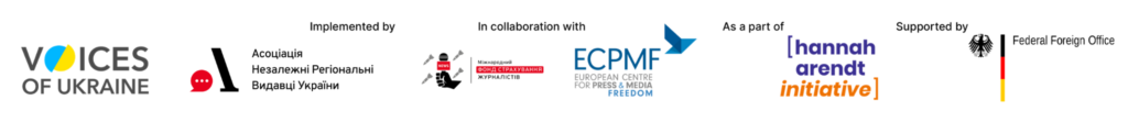 Нагадаємо, проєкт «Міжнародний Фонд Страхування Журналістів», реалізується Асоціацією «Незалежні регіональні видавці України», є частиною програми Voices of Ukraine / SAFE, що координується Європейським центром свободи преси та медіа. Voices of Ukraine / SAFE реалізується в рамках Hannah Arendt Initiative за підтримки Федерального міністерства закордонних справ Німеччини.